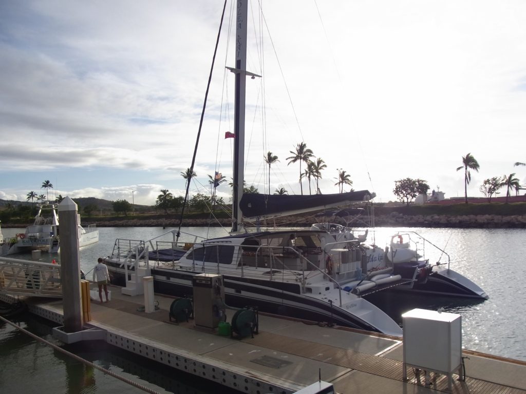 この船でマリーナから沖合いまで行きます。