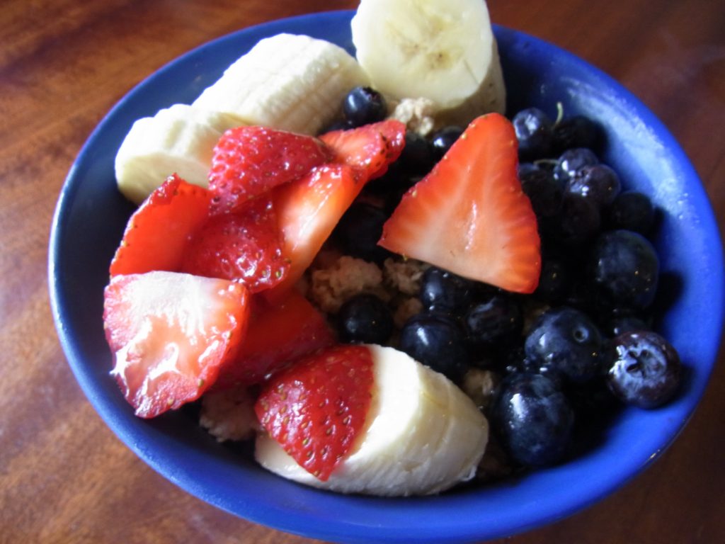 とにかく果物がまず多い。アサイのシャーベット感とシリアルのいい感じのコラボ。