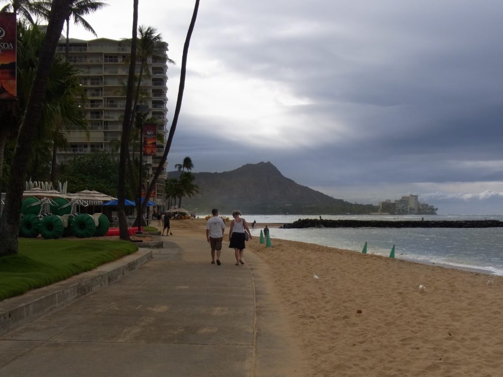 このビーチからの朝のダイヤモンドヘッドがすごくいい。