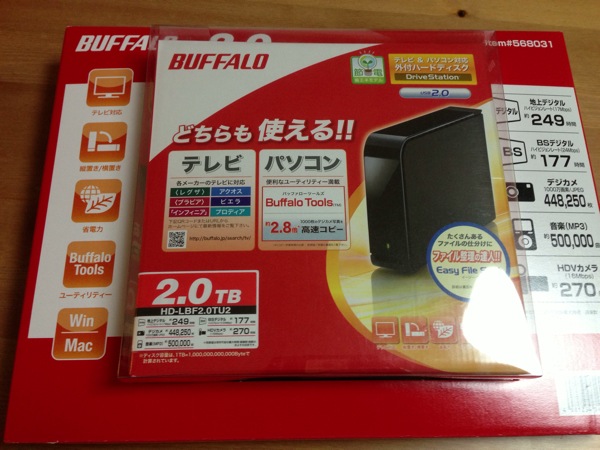 バッファローのHDD2TBモデル。