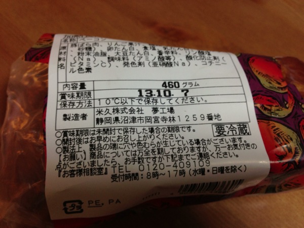 最近人気らしいアップルベーコン。重さがまちまちなのですが、値段は均一の¥658。