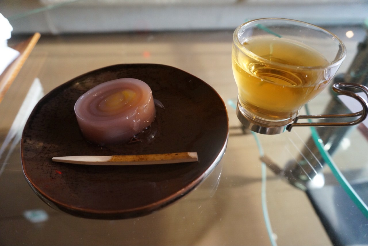 到着するとまずロビーでお茶菓子が出てきました。なかなか美味しい水ようかん。