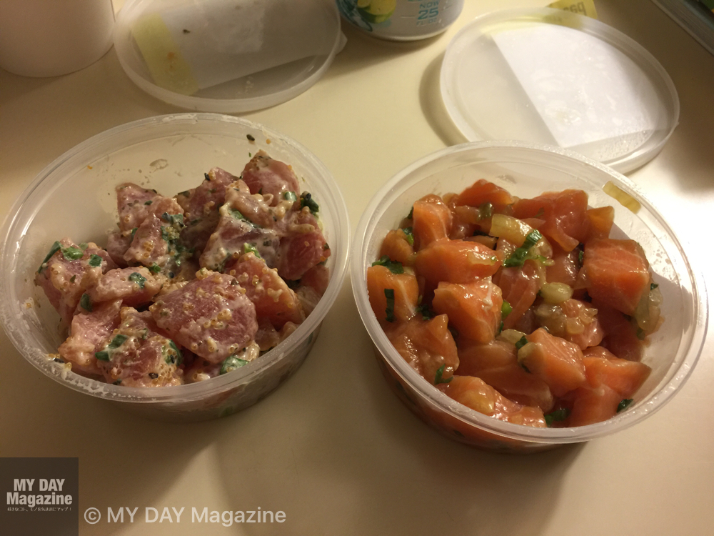 フードランドと言えば、ポキです。美味しいと有名ですが、実際美味しいと思います。ガラスケース内にかなりの種類の味から選べます。量り売りですが、容器がいくつか用意されていて、ハーフサイズが二、三人にちょうどいい量です。いつもこのハーフを2種類ほど買います。