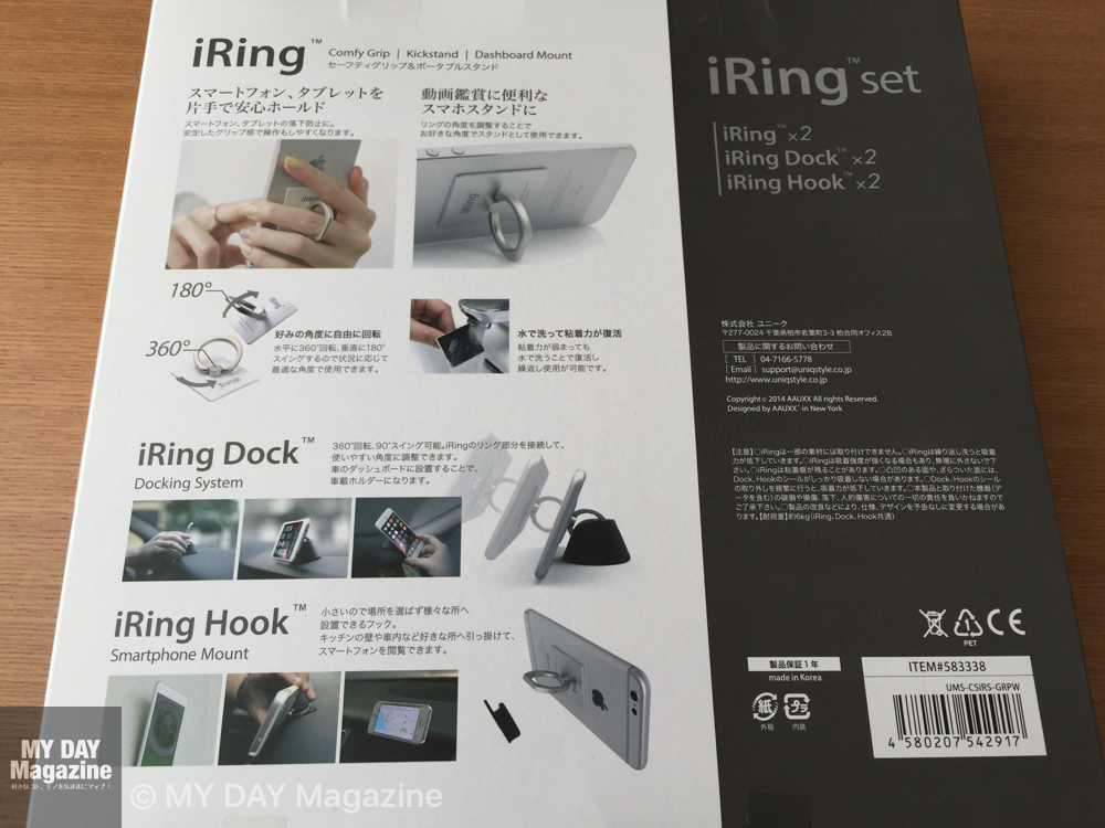 ドック、フック共に両面テープで固定する感じになっています。貼る場所は選ぶ必要がありますが、iRingをそのまま活用出来るのは便利です。個人的には車で使おうかと思っています。