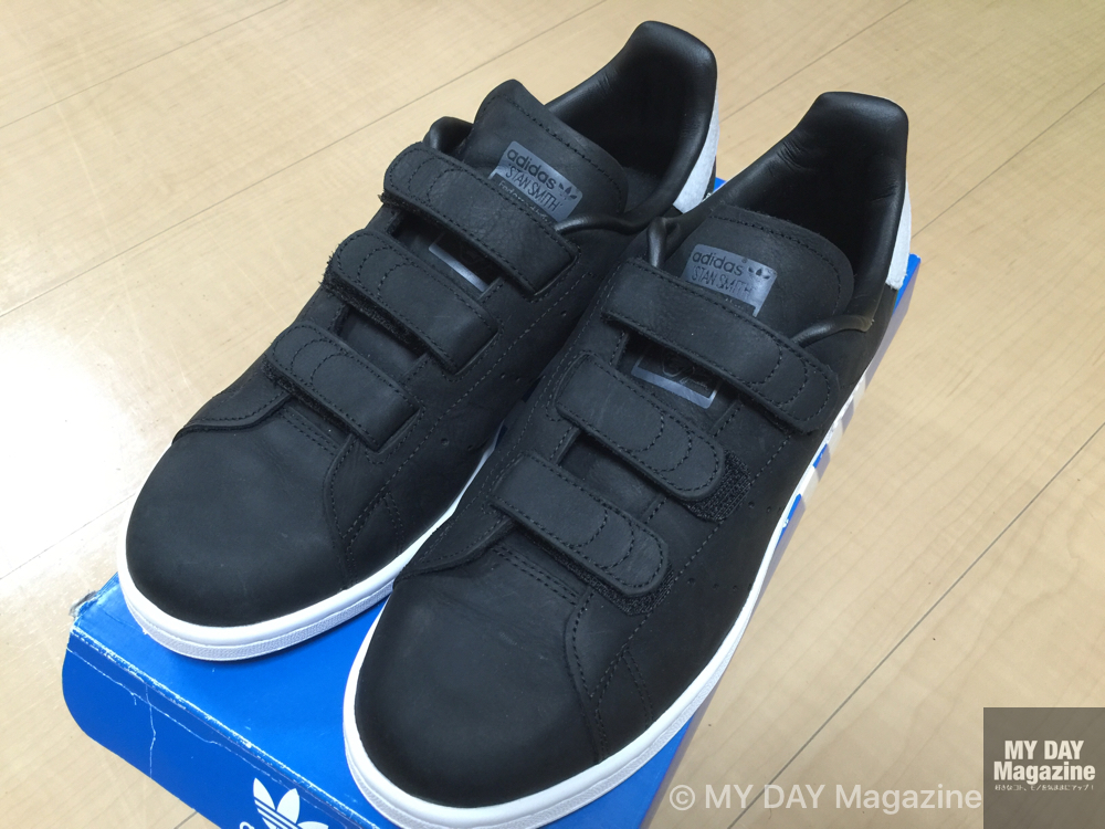 今回見つけたのは、スタンスミスコンフォートB24536ブラックです。今までもスタンスミスは何足か愛用してきました。現在は紐タイプのホワイト×ネイビーのものを愛用しておりましたが、このベルクロタイプを発見し、完全に一目惚れです。