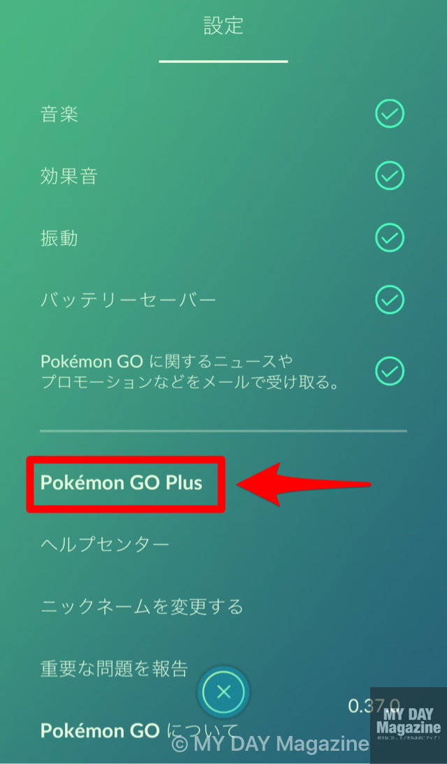 ポケモンGOのアプリを立ち上げて、メニューから上部の設定を開く。