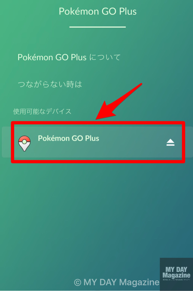 使用可能なデバイスから自身の本体を選ぶだけ。この時ポケモンGO Plus本体のボタンを押すとペアリングします。