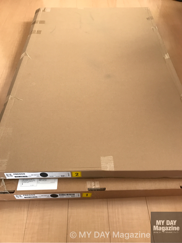 IKEAのピックアップエリアで自分で商品をカートに乗せて運ぶわけですが、この商品はパッケージが二つに分かれています。それぞれがかなり大きく重いので、1人では大変です。また、持ち帰りの際は、車によっては乗らない可能性があります。ミニバンタイプ以上は必要でしょう。