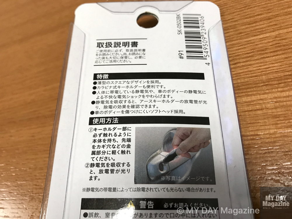 そんな時、小さな静電気防止キーホルダーが便利です。
