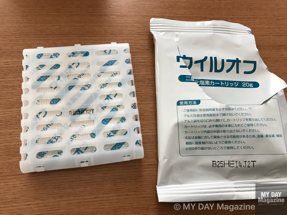 基本的な性能はクレベリンと同じです。二酸化塩素でウイルスを除去し、ニオイまでもクリーンにします。
