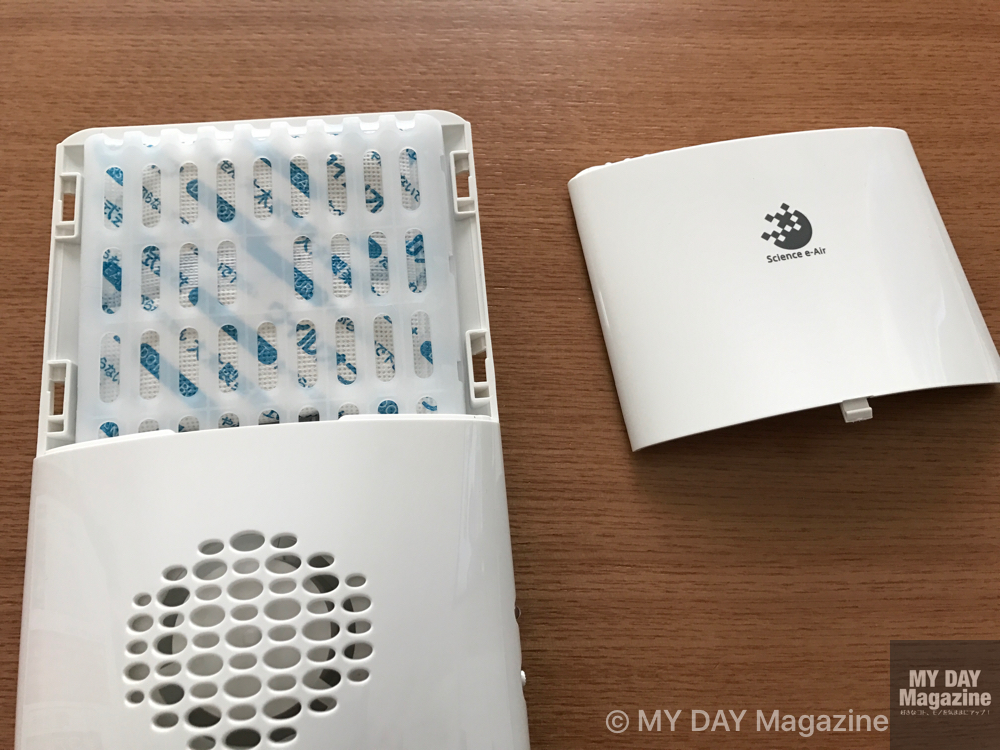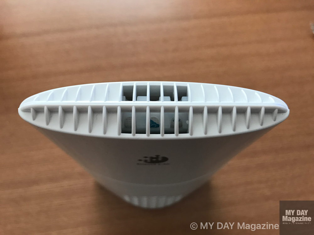 サイドのスイッチを入れるとファンが回り、上から二酸化塩素が放出される仕組みです。