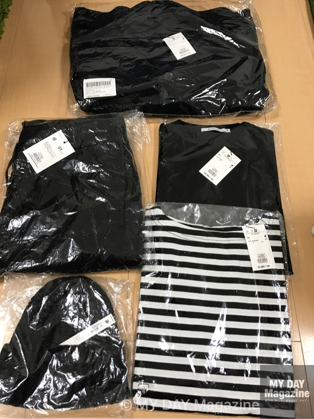 カーディガン¥5980、スウェットパンツが¥3980、スポーツ生地Tシャツが¥3995、ボーダーTシャツが¥2980、ニットキャップが¥1980。総額¥18,915(税抜)でした!この内容で¥5000は安すぎです。ハズレ無しで文句無しですね。