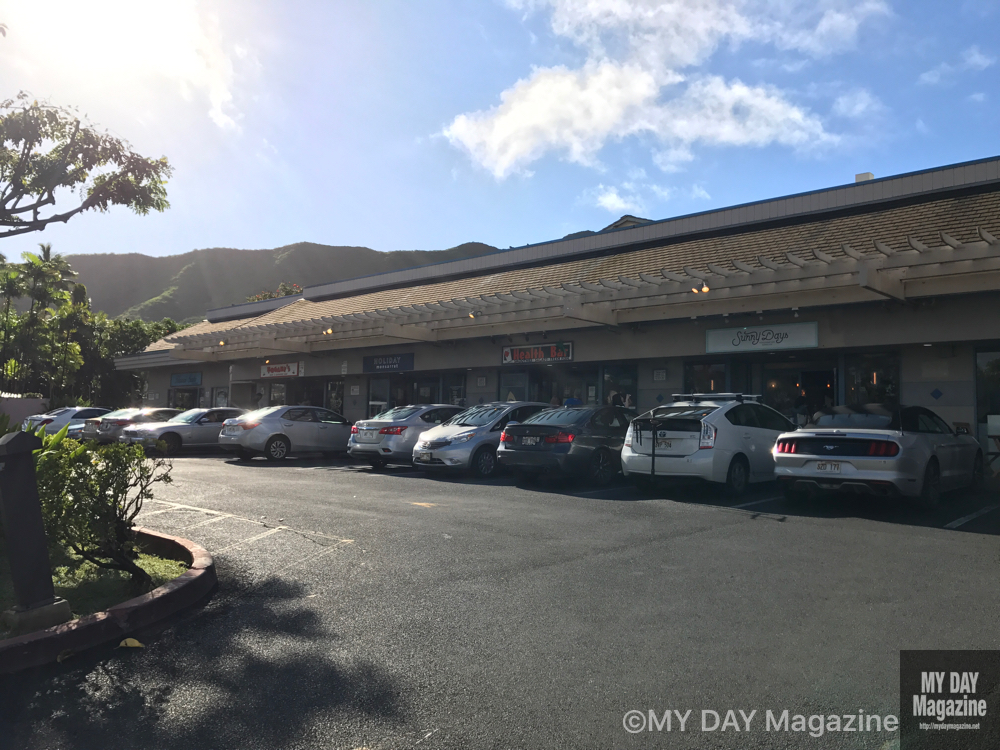 ダイヤモンドヘッドからパワーをもらった後は、カピオラニ公園横のモンサラット通りを歩いていきます。通りの右側、幼稚園の先に店舗が並んだ建物が見えてきます。