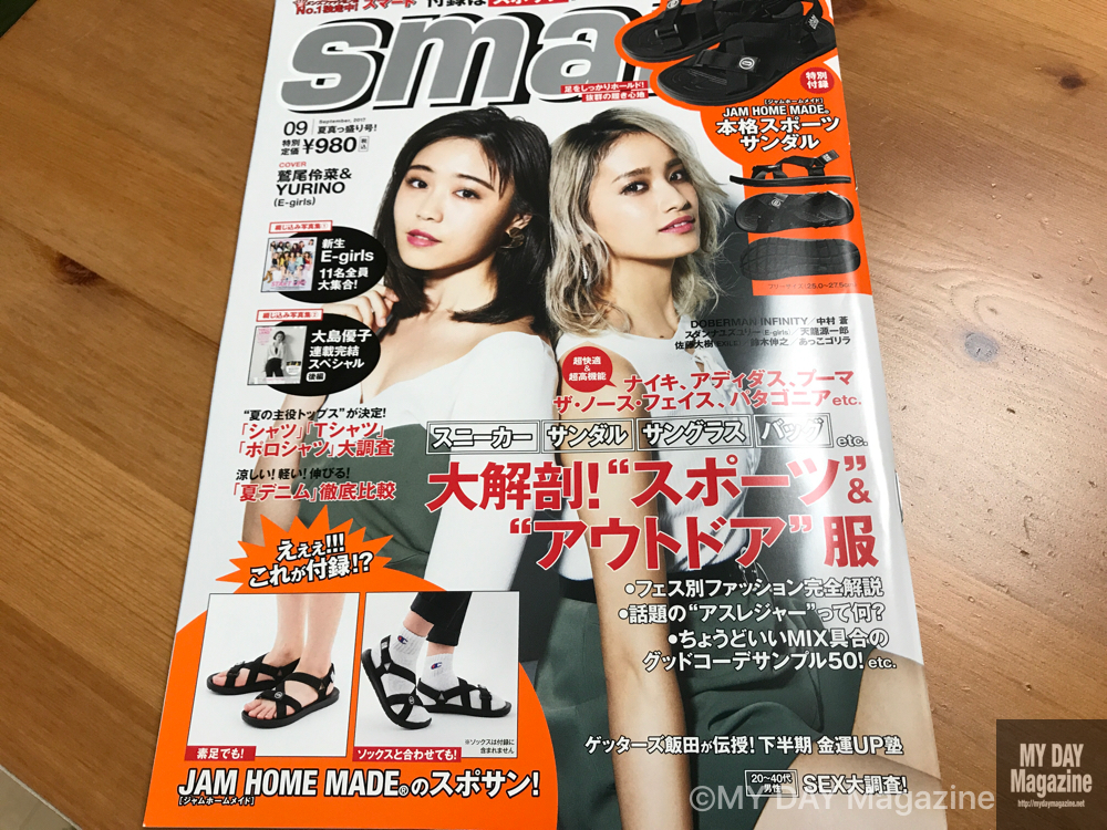 最近の雑誌付録はかなりクオリティが高くなってきています。smart9月号の付録はなんとスポーツサンダル。しかも個人的にも好きなブランド、JAM HOME MADEです。