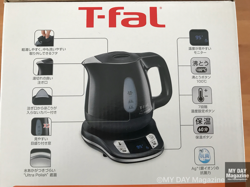 - 湯沸かし温度が選べる。100℃、95℃、90℃、85℃、80℃、70℃、60℃の7段階。