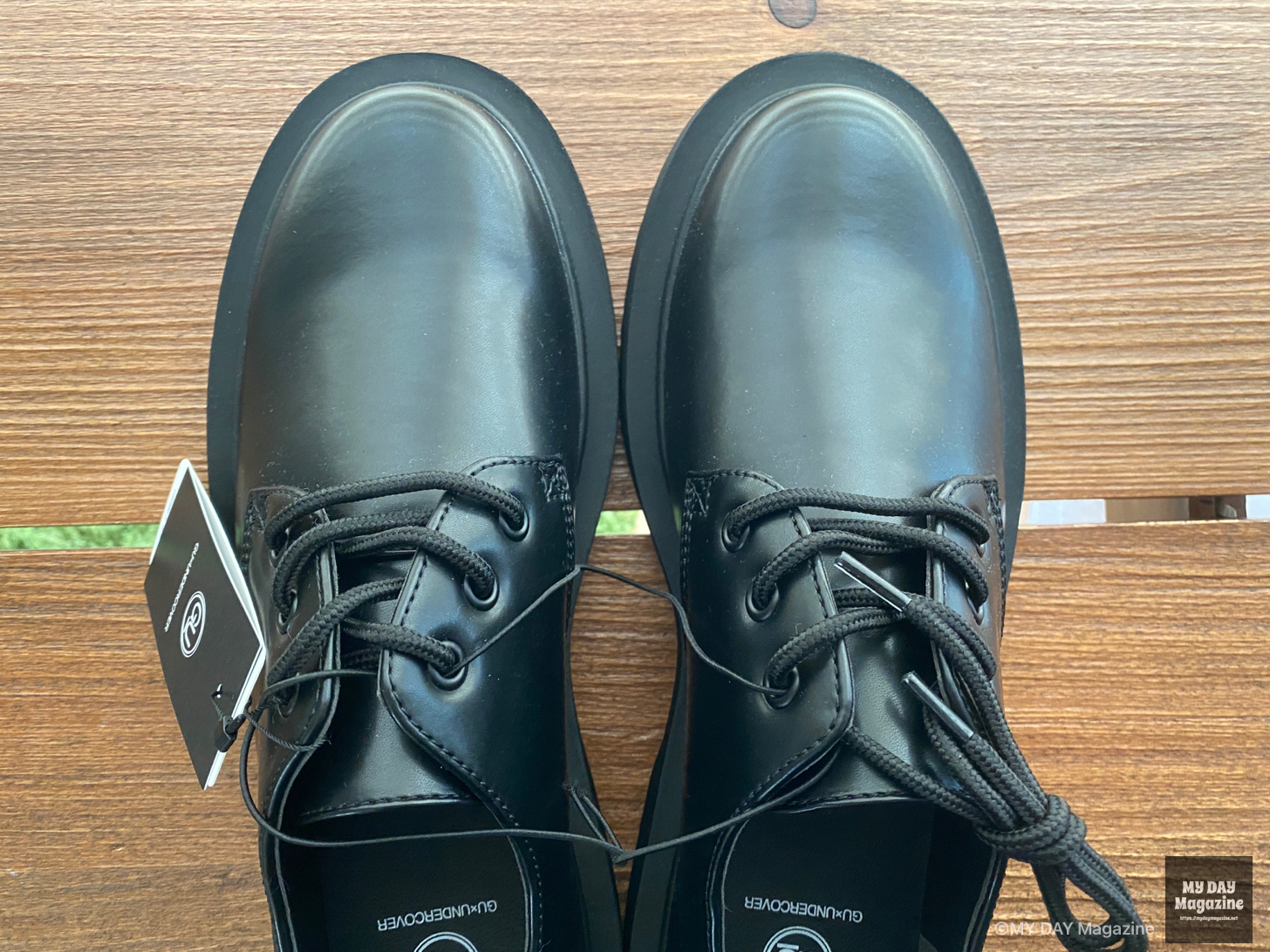 発売前は、既存のGUのラウンドトゥシューズにコラボの刻印がしてあるだけのような情報が流れていたため、一旦スルーしてましたが、実際は型から作られたオリジナルであることが分かりました。